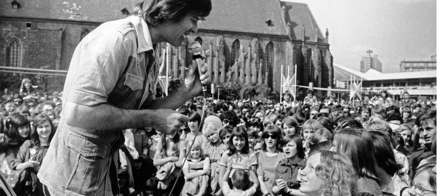 Accorsero quasi diecimila persone, di cui la metà almeno al servizio della Stasi, premurandosi di controllare l’altra metà in un curioso gioco di sguardi reciproci. Gli irreprensibili ingegneri tedeschi democratici avevano approntato un rivoluzionario stage rotante che però si ruppe al primo cambio palco. La praticità dei compagni teutonici risolse facendo spostare direttamente il pubblico dietro il palco, tutto senza il benché minimo incidente.